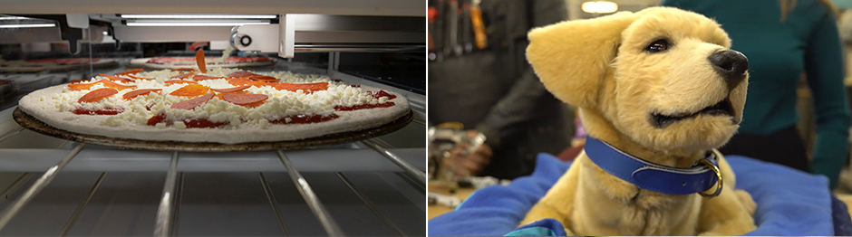 ▲ 피크닉의 ‘AI 피자로봇’(좌) / 치매 돌봄 AI 강아지 로봇 ‘톰봇’(우) (출처 : 피크닉 / 톰봇 로보틱스)