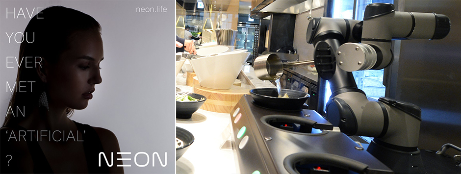 지난 CES에서 삼성전자는 삼성봇 케어, 에어, 리테일 등 3종 로봇을 선보였는데요. 이번 CES 2020에서는 삼성전자의 새로운 AI 네온(NEON)을 최초 공개합니다. 현재 네온은 아직까지 ‘Artificial human(인공 인간)’이라는 정보 외엔 구체적으로 공개하지 않았는데요. AI 로봇일지 아니면 또 다른 플랫폼일지 모르지만, 일상에서 쉽게 쓸 수 있는 AI 모델로 보입니다. LG전자의 경우 LG 로봇 제품군을 선보이는 전시존 클로이 테이블 공간을 따로 마련했습니다. 클로이 테이블에서는 손님들을 접객하고 주문, 음식 조리, 서빙, 설거지까지 척척 해내는 AI 로봇 서비스인 LG 클로이 다이닝 솔루션을 공개합니다.