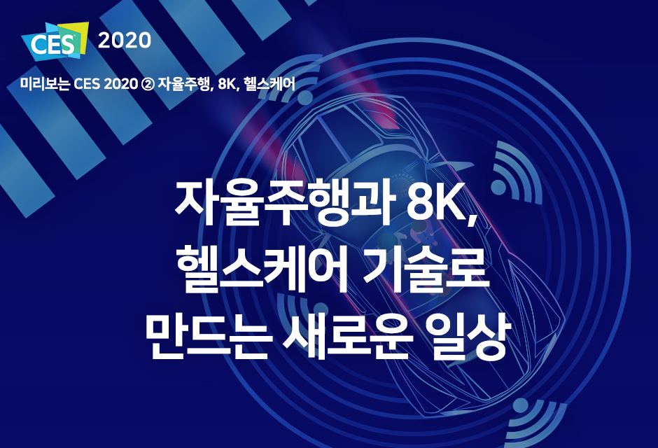CES 2020에도 자율주행과 8K 기술은 관람객의 눈길을 사로잡을 전망입니다. 뷰티, 헬스케어 분야에도 첨단 기술을 적용한 제품들이 공개될 예정인데요. 어떤 기술과 제품이 있는지 살펴볼까요?