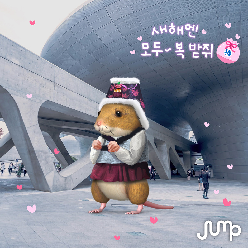 설날에도 JUMP AR을 멈출 수 없는 이유! 바로 귀여운 AR 동물들로 연하장을 보낼 수 있기 때문인데요. 2020년 새해를 맞아 미니 동물들이 설빔도 입었습니다. 올해의 동물인 쥐도 있으니 소중한 사람들에게 센스 있는 연하장을 보낼 수 있겠죠? 연하장에 있는 미니 동물들이 사랑스럽게 움직이면서 메시지를 전달하는데요. 다가오는 설날, JUMP AR의 동물 친구들이 전하는 특별한 연하장으로 소중한 사람들에게 한 해의 시작을 힘차게 응원하세요.