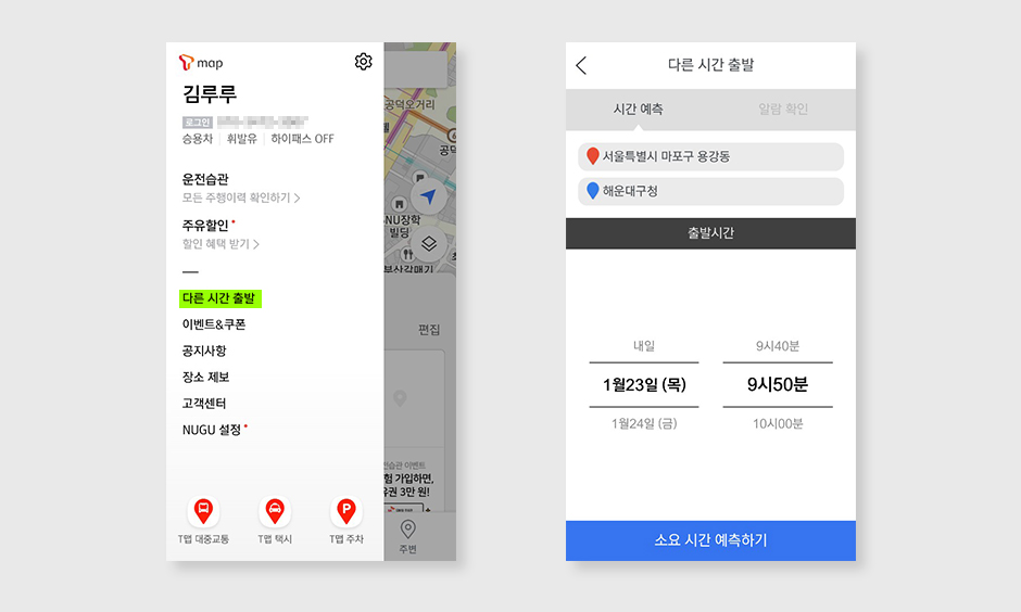 T맵에서 소요 시간 예측하는 법, 출발 시각과 목적지만 입력하면 끝!