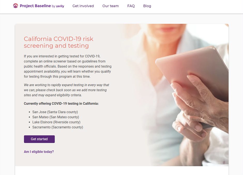 ▲ 구글의 자회사 베릴리(Verily)가 오픈한 코로나19 자가진단 사이트