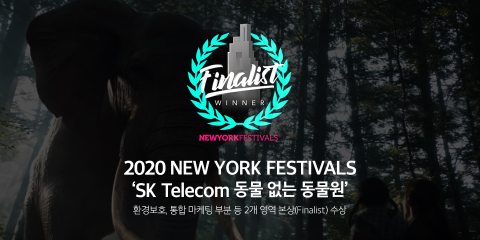 지난 5월 3일(현지 기준) 미국 뉴욕에서 ‘2020 뉴욕 페스티벌(Newyork festival Advertising Awards 2020)’이 열렸습니다. SK텔레콤의 ‘동물원 없는 동물원’ 캠페인이 세계 3대 광고제 중 하나인 뉴욕페스티벌에서 환경보호 부문(Environmental Effort)과 통합 마케팅 부문(Integrated Marketing) 등 2개 영역에서 본상(Finalist)을 수상했습니다. ICT 기술이 자연을 지킬 수 있다는 진정성 있는 캠페인 영상, 그리고 SNS를 통해 대중이 간편하고 재미있게 캠페인에 참여할 수 있도록 구성한 것이 좋은 평가를 받았습니다.