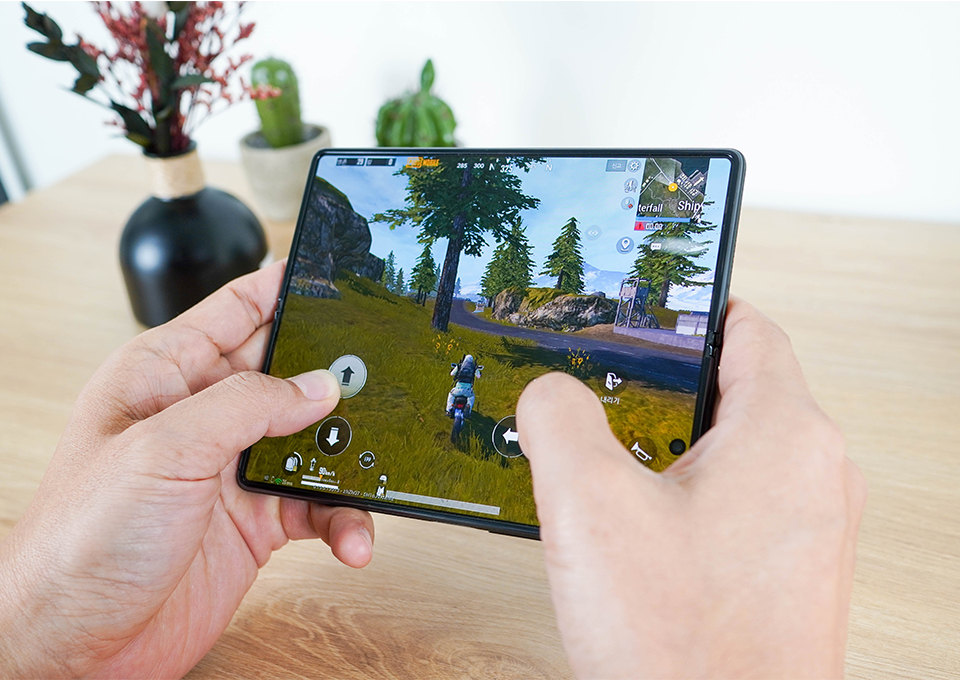 하지만 6.2인치로 커진 커버 디스플레이는 동영상 감상만이 아니라 웹서핑을 하기에 충분할 정도로 커졌습니다. 업그레이드된 성능을 바탕으로 <모바일 배틀그라운드>와 같은 고사양 게임을 즐기기에도 충분할 정도로 넓고 시원한 화면을 경험할 수 있었습니다.