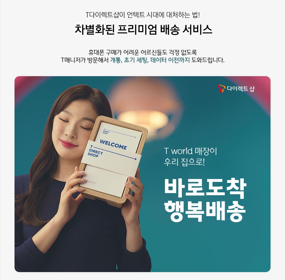 SK텔레콤 T 매니저가 직접 찾아가서 개통부터 데이터 이전, 중고폰 보상 등의 프리미엄 서비스를 제공하는 ‘바로 도착 행복 배송’서비스가 있으니까 직접 찾아뵙지 못해도 부모님이 사용하시기에 어려움이 없을 것 같아요.