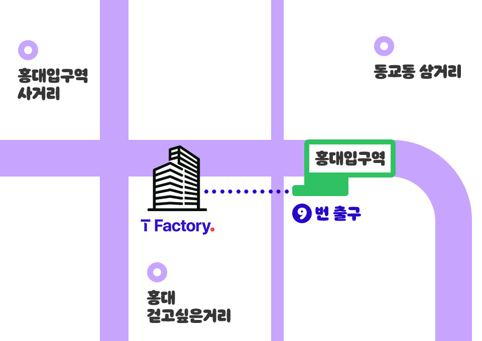 힙(Hip)한 기운으로 가득한 홍대입구역에 도착했습니다. T팩토리는 9번 출구로 나와 90m가량 직진하니 나타났죠. 설레는 마음으로 입구로 들어갔습니다.