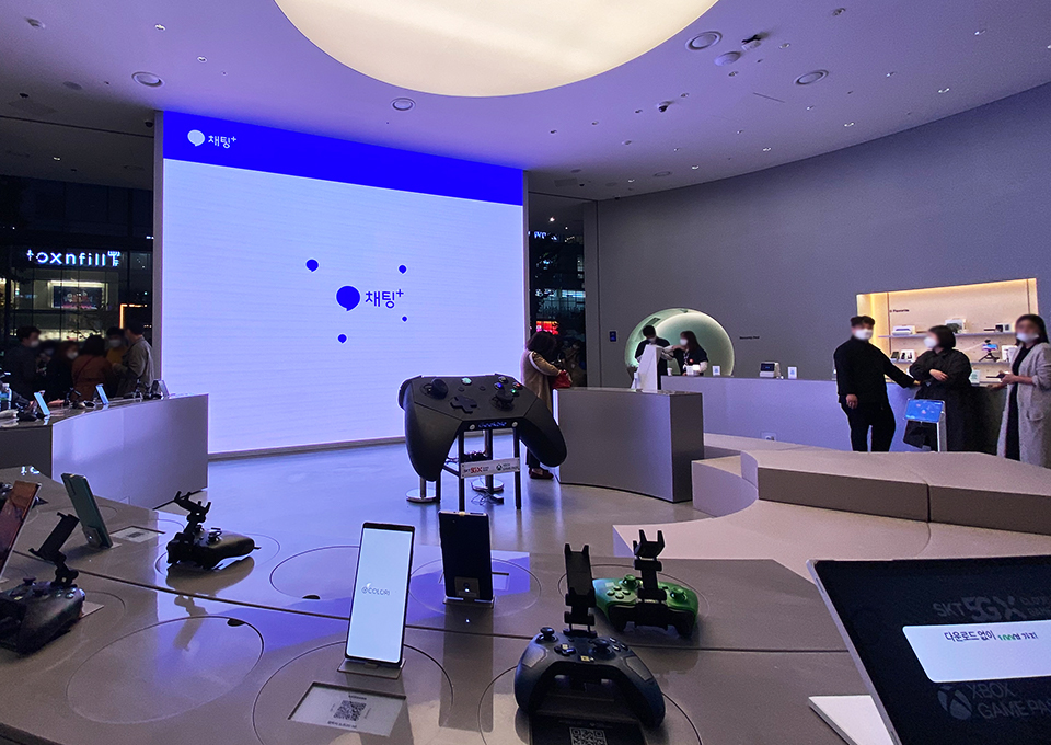 가장 먼저 눈에 들어온 곳은 플렉스 스테이지입니다. 매월 다른 공연·전시가 열리는 공간인데요. 11월에는 SKT 5GX 클라우드 게임 체험존이 운영된다고 합니다.