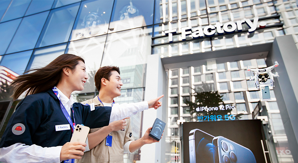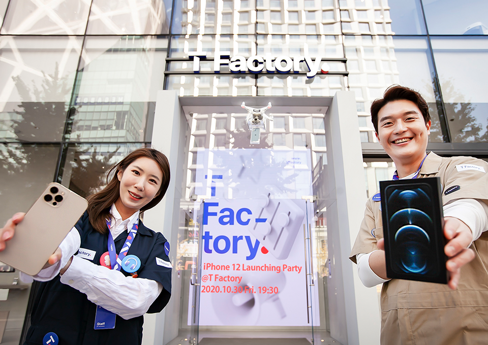 SKT 아이폰 12 론칭 파티는 사회적 거리두기 지침을 준수해 유튜브로 생중계하는 언택트 행사입니다. T팩토리에서 MZ 세대를 대상으로 진행하는 첫 행사이기도 하죠.