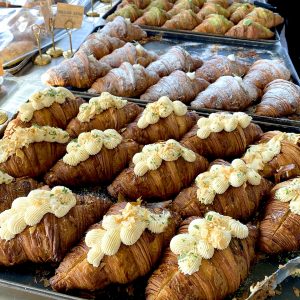카페 새빌은 베이커리가 유명합니다. 천연 버터와 천연 발효종을 사용한 수제반죽으로 매일 빵을 직접 굽는데요. 새빌에서 가장 인기있는 빵은 바로 ‘크로와상’. 크로와상 위에 진한 가나슈를 올리거나 녹차 가루 등으로 맛을 더했습니다.