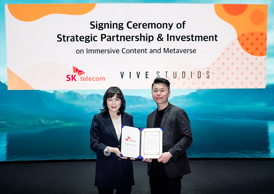 SKT가 국내 최고 수준의 버추얼 프로덕션((Virtual Production) 전문 스튜디오 비브스튜디오스(ViveStudios)와 협력합니다. SKT는 비브스튜디오스와 협력을 바탕으로 5G 시대 핵심 산업으로 부상한 메타버스(Metaverse) 경쟁력 강화에 본격적으로 나섭니다. 자세한 소식을 전합니다.