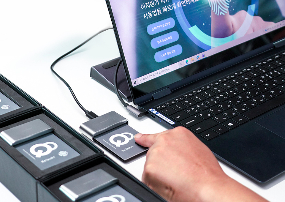 ▲ 카드형 지문보안키 ‘이지퀀트’ 사용 모습