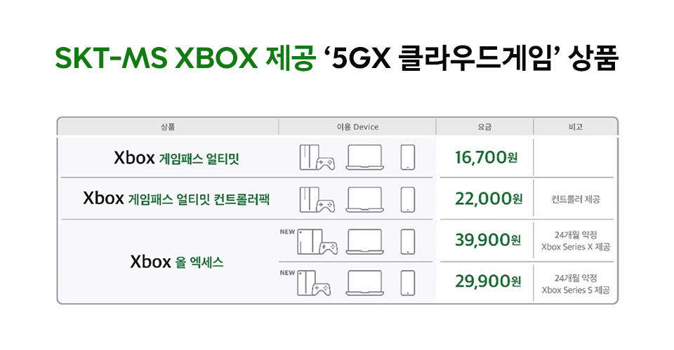 SKT는 고객들의 게임 이용 행태 변화에 맞춰 게임 컨트롤러를 포함한 월정액 상품, 콘솔과 클라우드 게임을 결합한 구독형 상품 등 고객의 선택권을 넓힐 수 있는 다양한 종류의 상품을 운영하고 있습니다. SKT는 이번 iOS 및 PC버전 출시로 고객의 니즈에 부합하는 다양한 형태의 클라우드 게임 상품을 지속해서 마련해 나간다는 방침입니다.