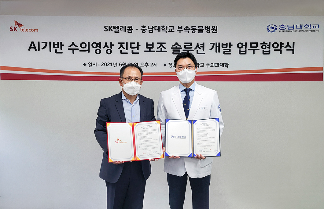 이번 MoU에 따라 충남대학교는 수의과대학 부속동물병원에 보유 중인 수만 건의 영상 빅데이터를 비식별 정보화하고, 수의영상진단 전공 수의사가 이에 대한 진단 소견을 첨부해 SKT에 제공할 계획이다.