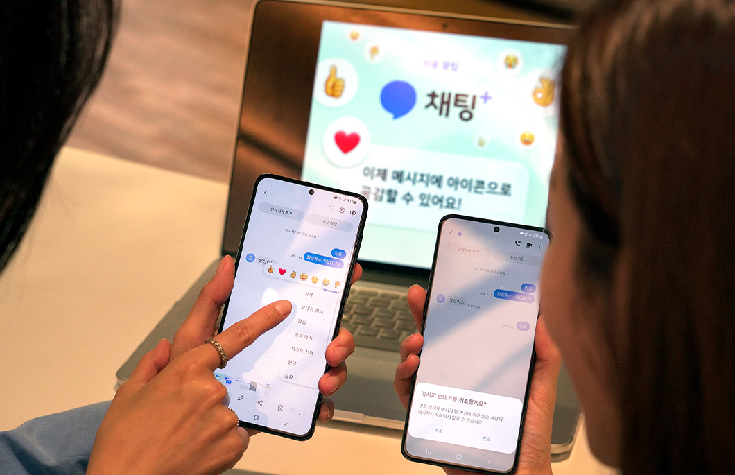 채팅플러스의 ‘메시지 보내기 취소’ 기능을 사용할 수 있는 단말은 삼성전자의 갤럭시 S21 시리즈이며, 이동통신 3사는 서비스 가능 단말을 순차적으로 확대할 예정이다.