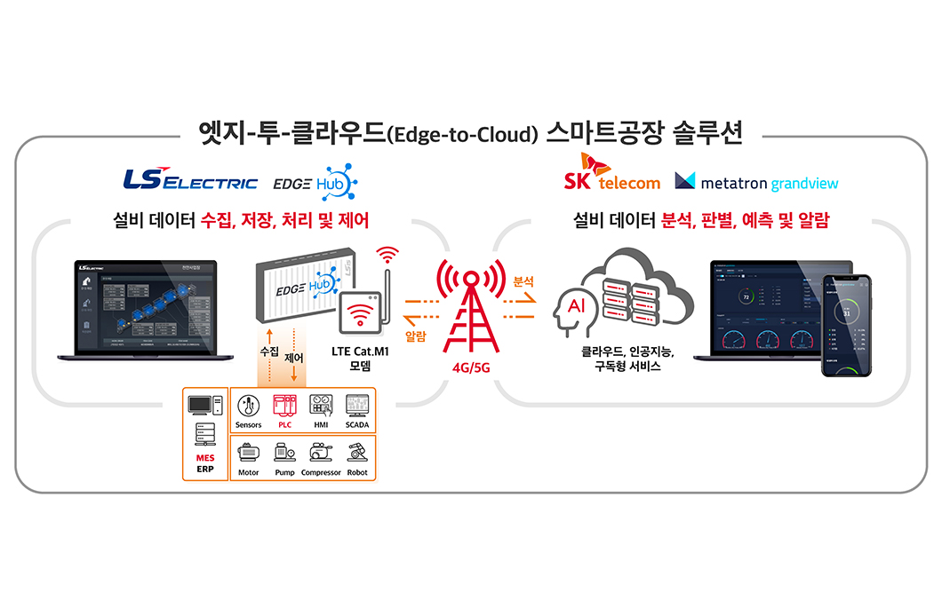 양사는 SKT의 Cloud 기반 스마트공장 AI 구독 서비스인 ‘메타트론 그랜드뷰(Metatron Grandview, 이하 그랜드뷰)’와 LS일렉트릭의 엣지 컴퓨팅 솔루션인 ‘엣지 허브(Edge Hub)’를 결합해 스마트공장 솔루션인 ‘엣지-투-클라우드(Edge-To-Cloud)’를 출시한다.