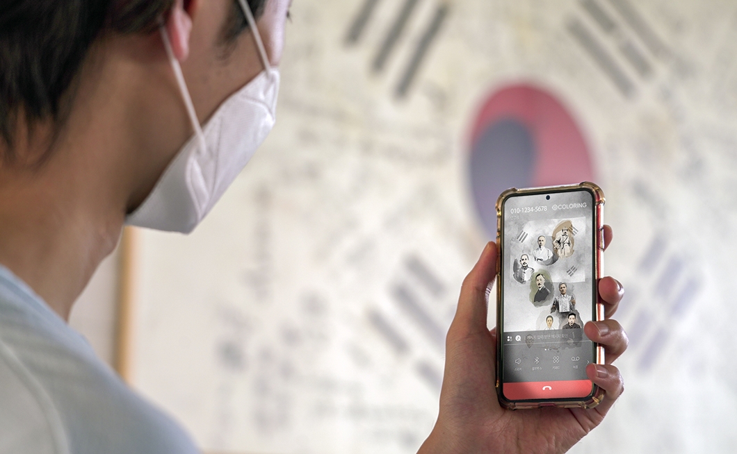 SK텔레콤은 국가보훈처, 독립기념관과 공동기획•제작한 총 5편의 V 컬러링 콘텐츠를 8월 2일(월)부터 제공한다고 밝혔다. 사진은 SKT 홍보 모델이 V 컬러링을 보고 있는 모습