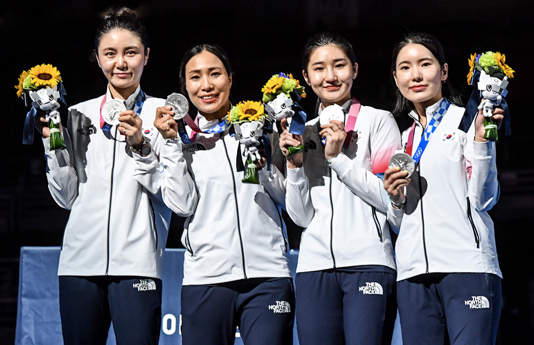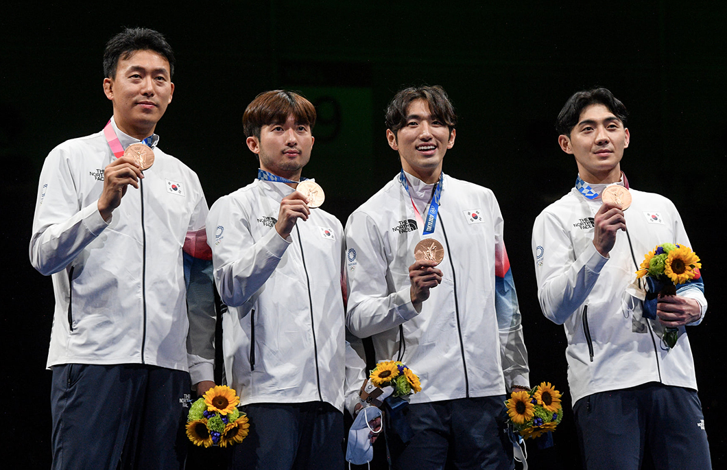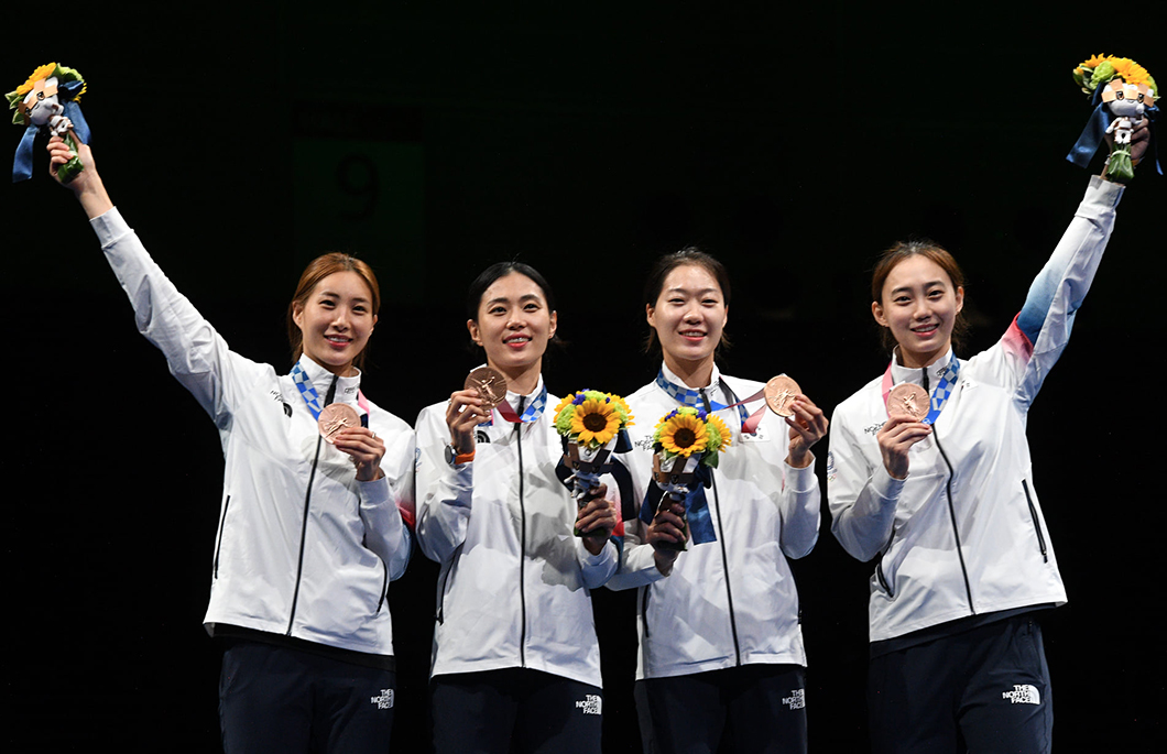 도쿄올림픽에서 메달을 획득한 우리나라 펜싱 선수들이 기념촬영을 하고 있다 (사진 출처: 국제펜싱연맹, 활용시 출처를 ‘국제펜싱연맹’으로 기재 바랍니다)