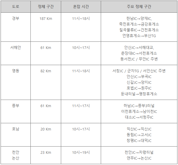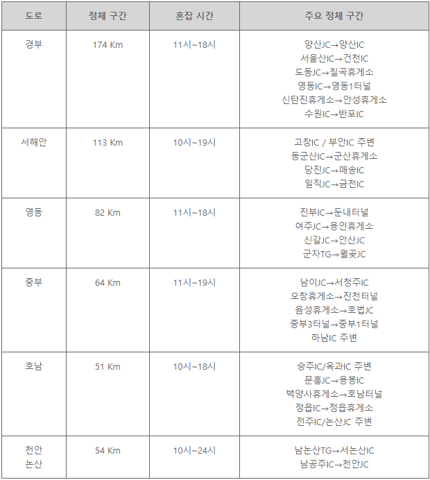 ※ 참고. 주요 고속도로 정체 예상 구간 및 시간