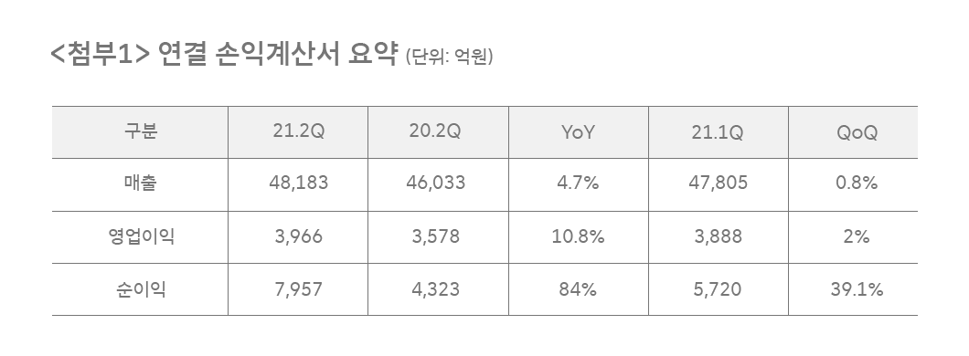– 매출 4조 8,183억 원, 영업이익 3,966억 원, 순이익 7,957억 원