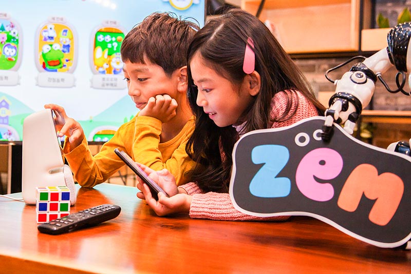 SK텔레콤 홍보모델들이 키즈 전용 앱 ‘잼(ZEM)’을 이용하고 있다.