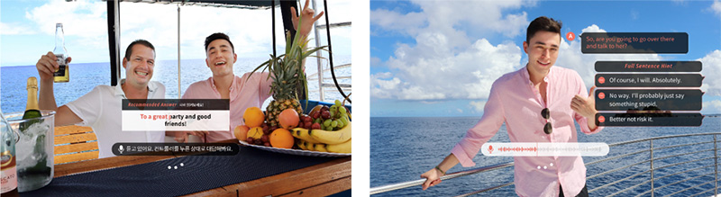 외국어 말하기에 어려움을 느꼈던 학습자들은 VR이 제공하는 리얼한 환경에서 원어민과 대화에서 자신감을 향상시킬 수 있다. 기존 대비 2.7배 높은 학습 효과를 얻을 수 있다는 평가다.