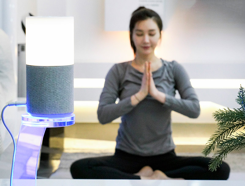 한 이용자가 SK텔레콤 AI 명상 서비스 ‘누구 마음보기’를 들으며 명상을 하고 있다. ‘누구 마음보기’는 총 41종의 명상 콘텐츠를 무료로 제공한다.