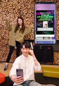 SK텔레콤 모델들이 점프AR을 이용해 온라인 응원에 참여하는 모습