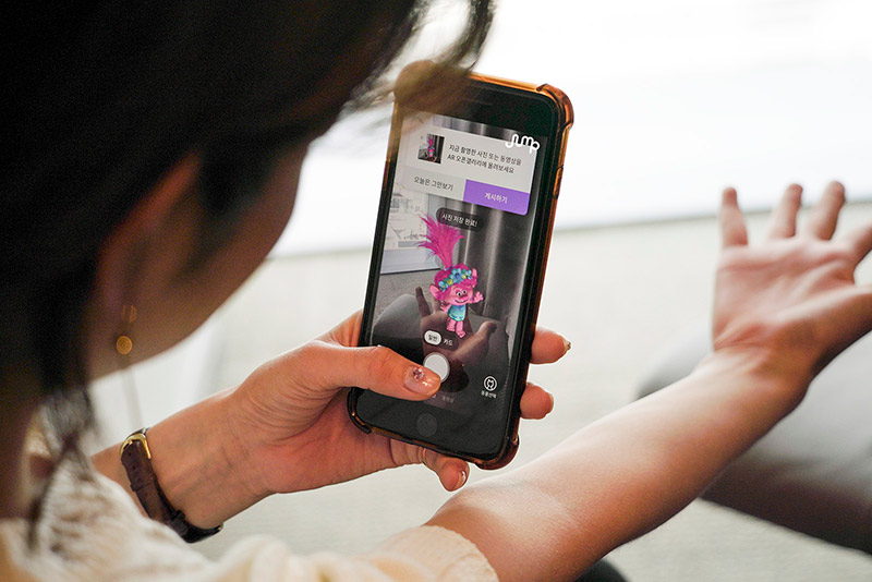 SK텔레콤 ‘점프AR’ 앱에서 귀여운 애니메이션 ‘트롤’ 캐릭터인 ‘파피’ ‘비기’ ‘트롤짜르트’를 불러 함께 사진과 동영상을 찍을 수 있게 됐다.
