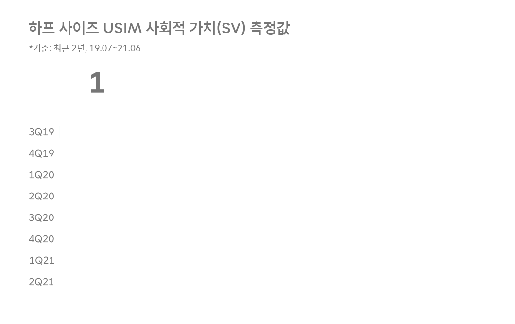 최근 2년(19.07~21.06)간 하프 사이즈 유심이 창출한 사회적 가치는 1,851만 원입니다. 2020년 한 해 동안 1,262만 원의 사회적 가치를 창출했습니다. 이를 SV 산정 수식으로 살펴보면 아래와 같습니다.