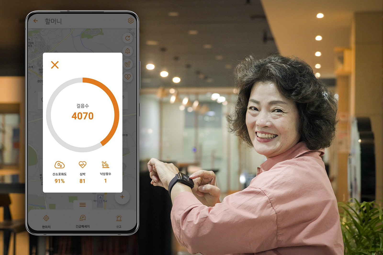 이 밖에도 ‘스마트지킴이2’는 심박수나 산소포화도, 활동량(걸음 수), 수면건강상태(수면혈중 산소포화도) 등의 건강정보와 착용자의 안전을 위한 낙상감지 기능도 탑재하고 있다.