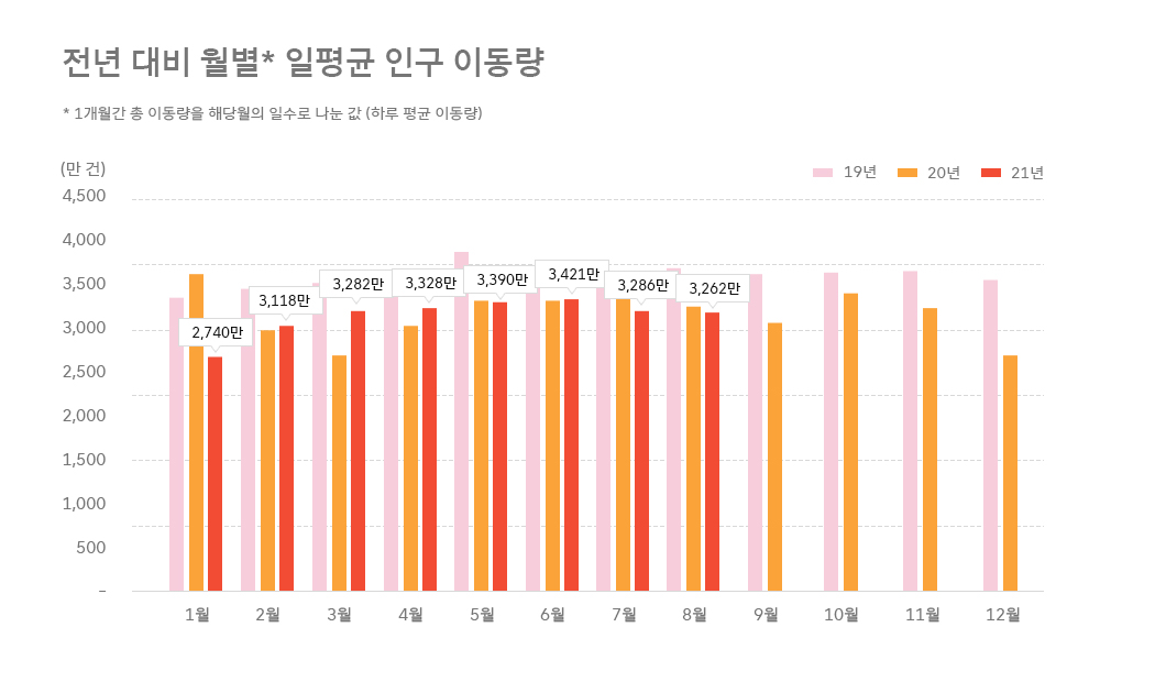 *단, ‘21년 8월은 8/1~22까지 하루 평균 인구 이동량