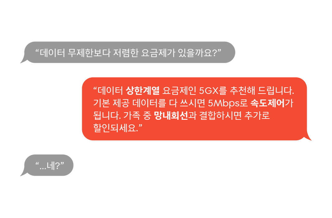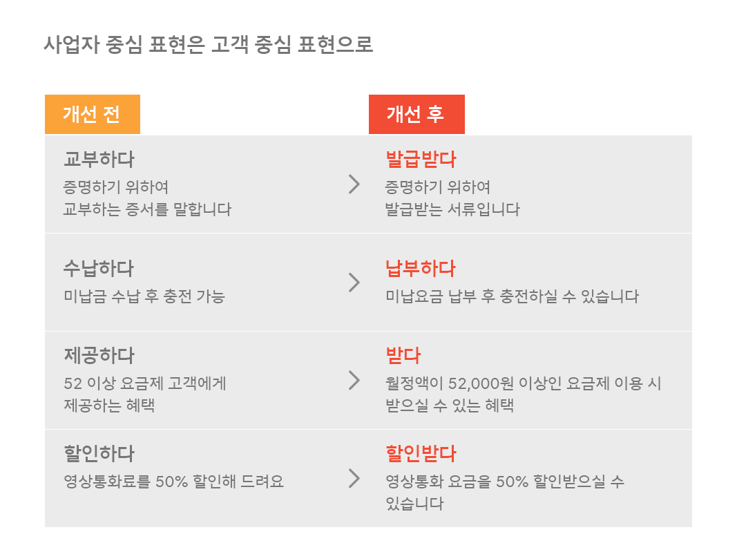 본문의 첫 대화는 SKT의 고객언어혁신 2.0에서 아래와 같이 바뀐다.