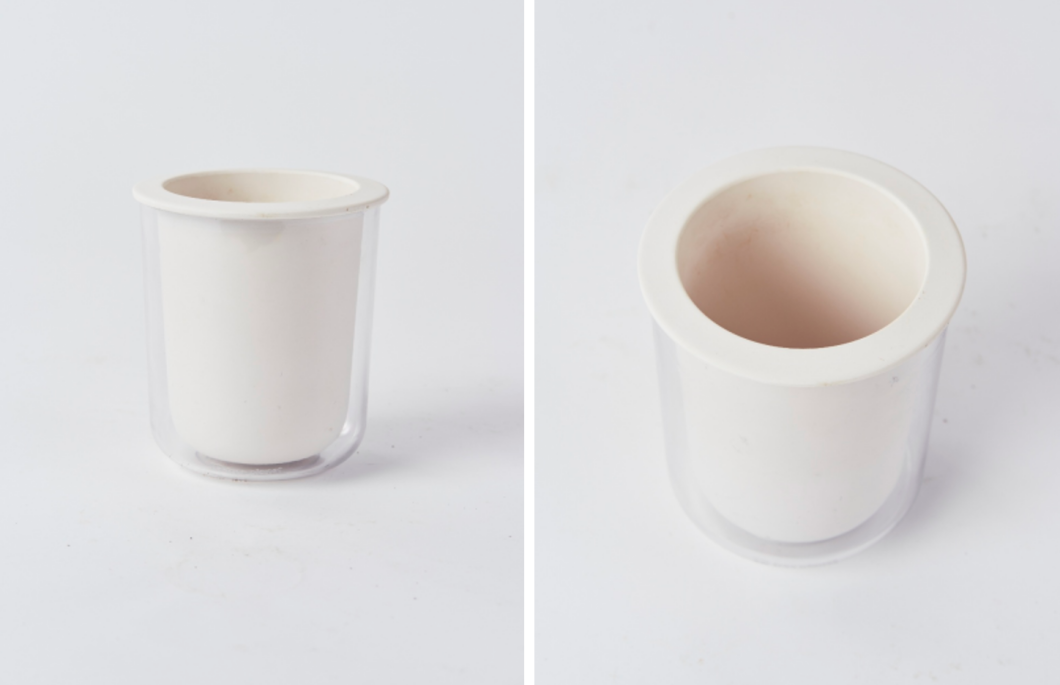 스밈 화분은 삼투압 원리를 적용한 백자 소지 속화분이 식물이 필요한 만큼만 물을 자동으로 흡수해 겉화분에 물을 주면 한 달에 한 번만 물을 줘도 문제 없음.