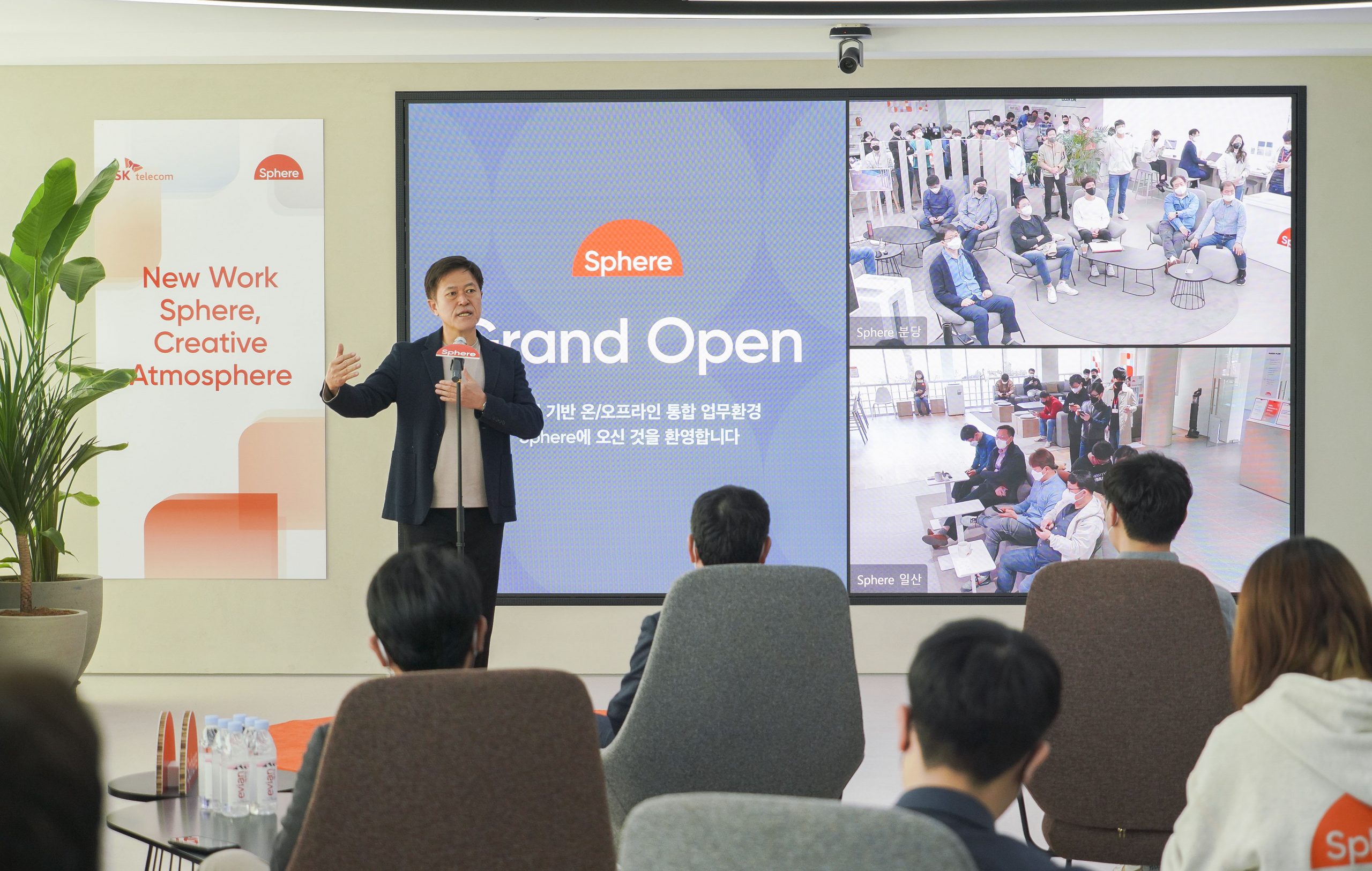 SKT 경영진, 거점오피스 ‘Sphere’서 구성원과 오프닝 세리머니