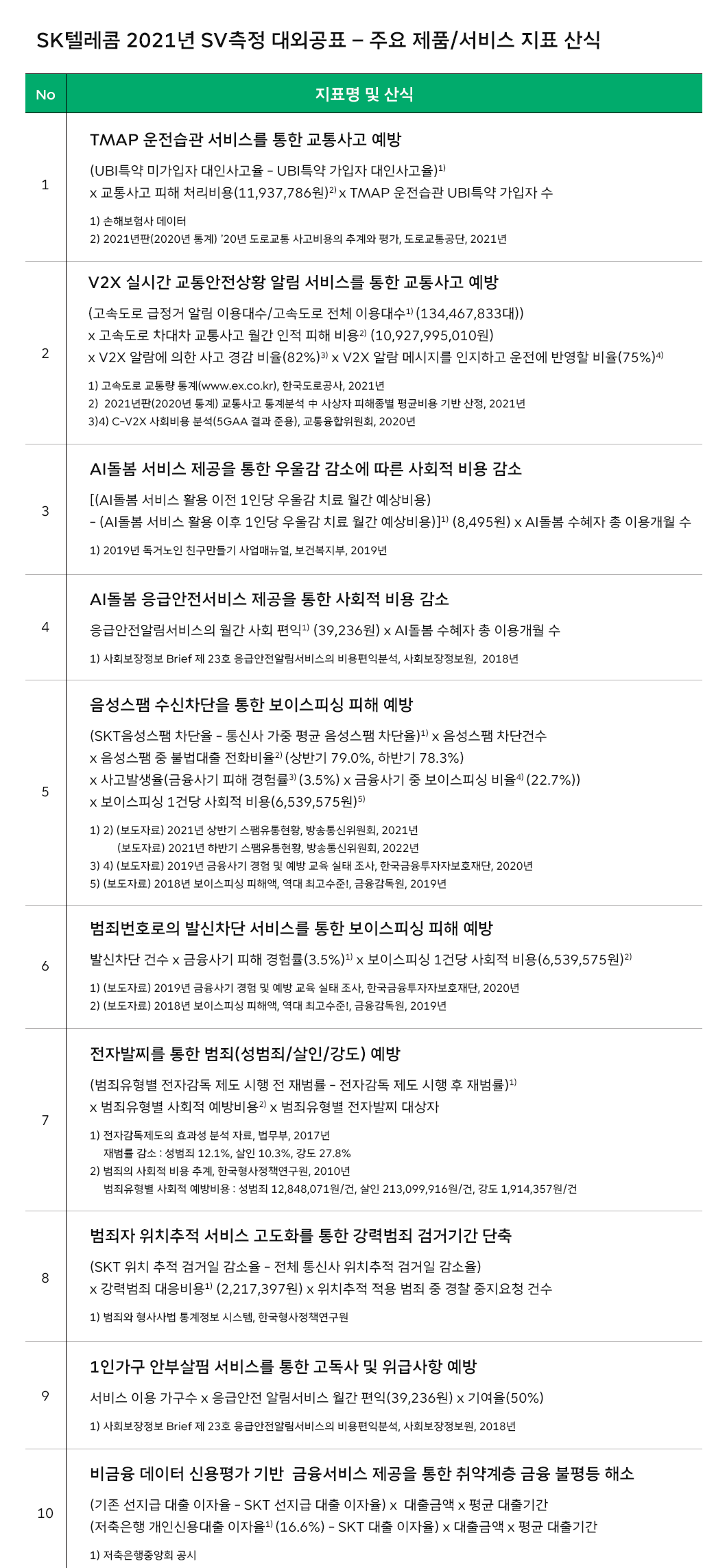‘보이스피싱 발신 차단 서비스’의 사회적 가치 측정 산식은 발신 차단 건수(32,271건)에 금융사기 피해 경험률(3.5%)을 곱하고 여기에 보이스피싱 1건당 사회적 비용(6,539,575원)을 곱하면 완성됩니다.