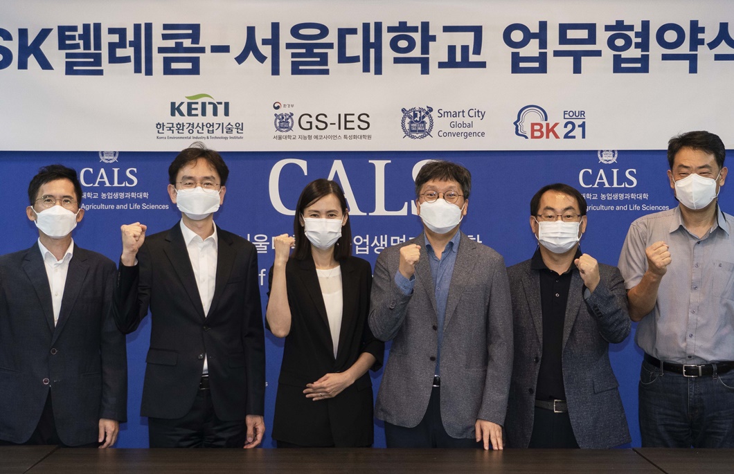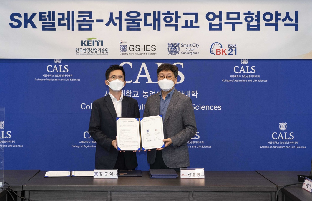 SKT는 28일 오후 서울대학교 농업생명과학대학에서 스마트시티 글로벌 융합 혁신인재양성 교육연구단 및 지능형 에코사이언스 특성화 대학원 두 곳과 각각 협약을 체결했다.