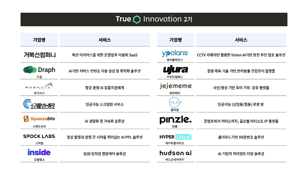 ※참고: SKT True Innovation Accelerator 2기 선발 스타트업 리스트