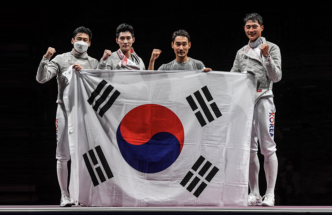 지난 2020 도쿄 올림픽에서 단체전 금메달을 획득한 ‘어펜져스’ 선수들의 모습. (사진 제공 : 국제펜싱연맹)