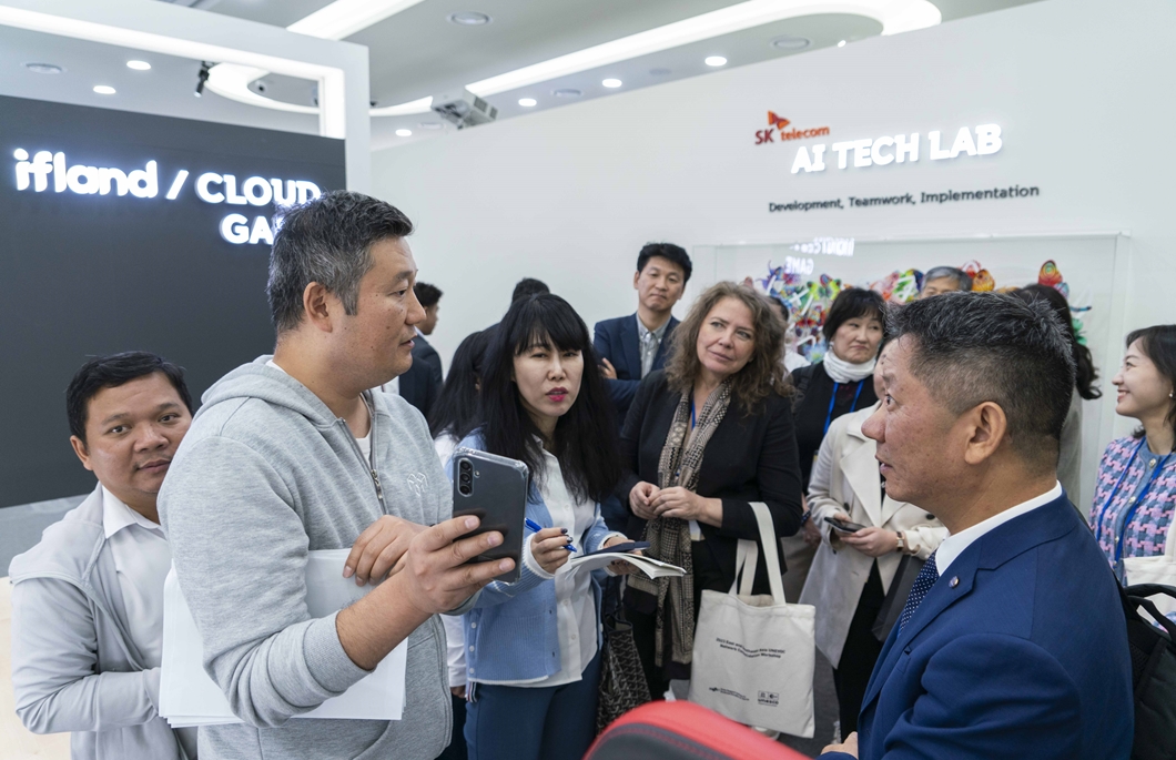 SK텔레콤이 대한민국을 방문한 세계 각국의 민간사절단에게 AI 혁신 기술 체험 기회를 제공하고, 청년세대를 위한 AI 교육 프로그램을 공유하며 ‘ICT 코리아’의 위상을 높였다.