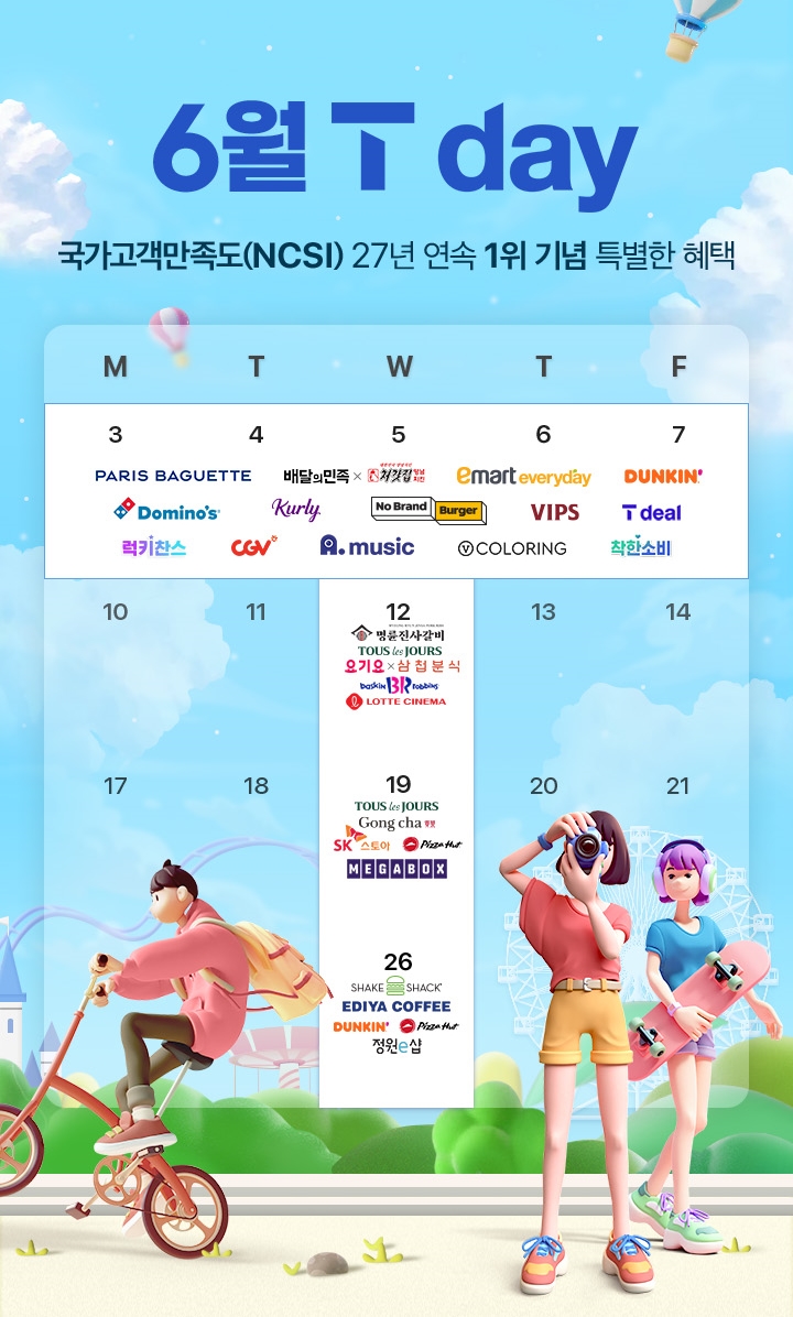 – 유일무이 NCSI 27년 연속 1위, 고객 사랑에 보답하고자 6월 T멤버십 혜택 대폭 강화