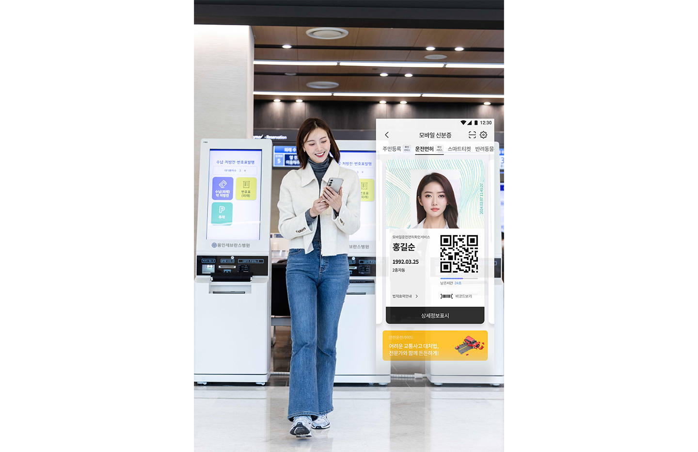 국내 병원에서 본인인증을 할 때 PASS 모바일 신분증 확인서비스QR 스캔 방식을 적용한 건 용인세브란스병원이 처음이다. QR 스캔 방식은 개인정보 수기 입력에 따른 오류를 줄이고 병원 담당자의 업무 효율을 높일 수 있다.