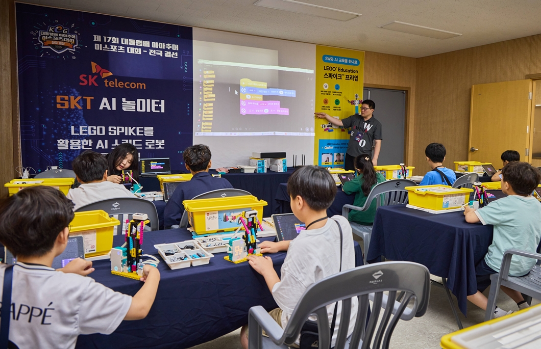 또 SKT는 대회 현장을 찾은 초∙중∙고등학생들을 대상으로는 간단한 로봇 제작을 통해 AI 머신러닝을 배울 수 있는 AI 로봇 프로그래밍 교육도 마련했다. 학생들은 ‘레고 스파이크 프라임’ 교구를 활용해 블록 형식의 명령어로 코딩한 로봇을 머신러닝 기반으로 작동시켜 보며 AI 프로그래밍을 학습할 수 있다.