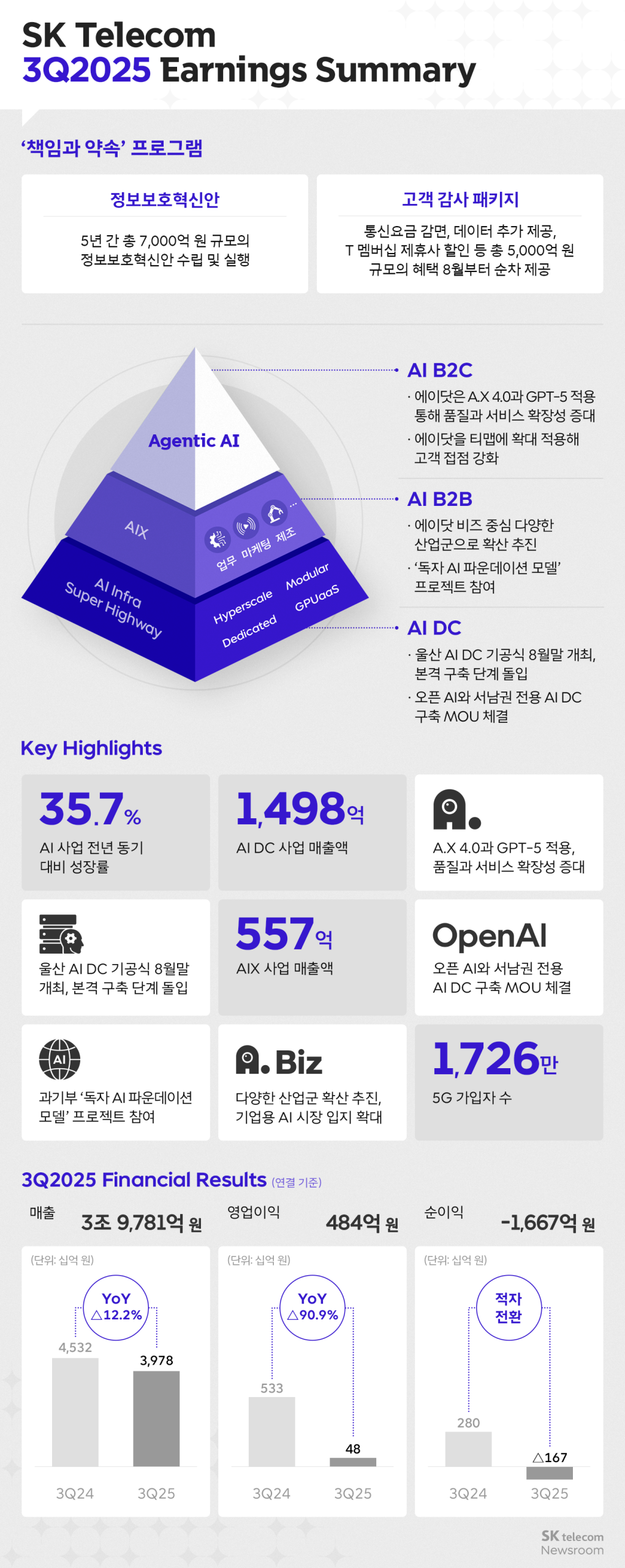 SKT는 고객 신뢰 회복을 최우선으로 두고, AI 사업에 본격적인 성과를 창출하는 등 위기를 기회로 삼아, 더 단단한 회사로 나아가겠습니다.