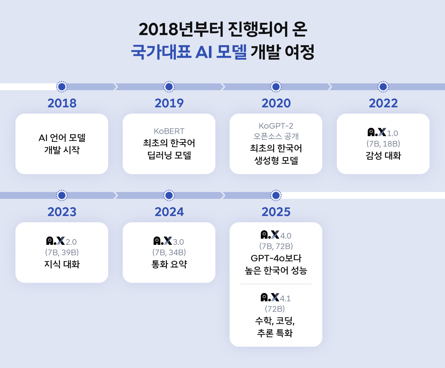 이 같은 협업과 구현 경험은 단기간에 형성된 것이 아니다. SKT는 그동안 AI 언어 모델을 단계적으로 선보이고 고도화하며 AI 모델 개발 경험을 축적해 왔다. 이러한 모델 개발 과정에서 축적된 기술과 노하우는 이후 초거대 AI 모델 개발을 추진하는 데 있어 중요한 기반이 됐다.