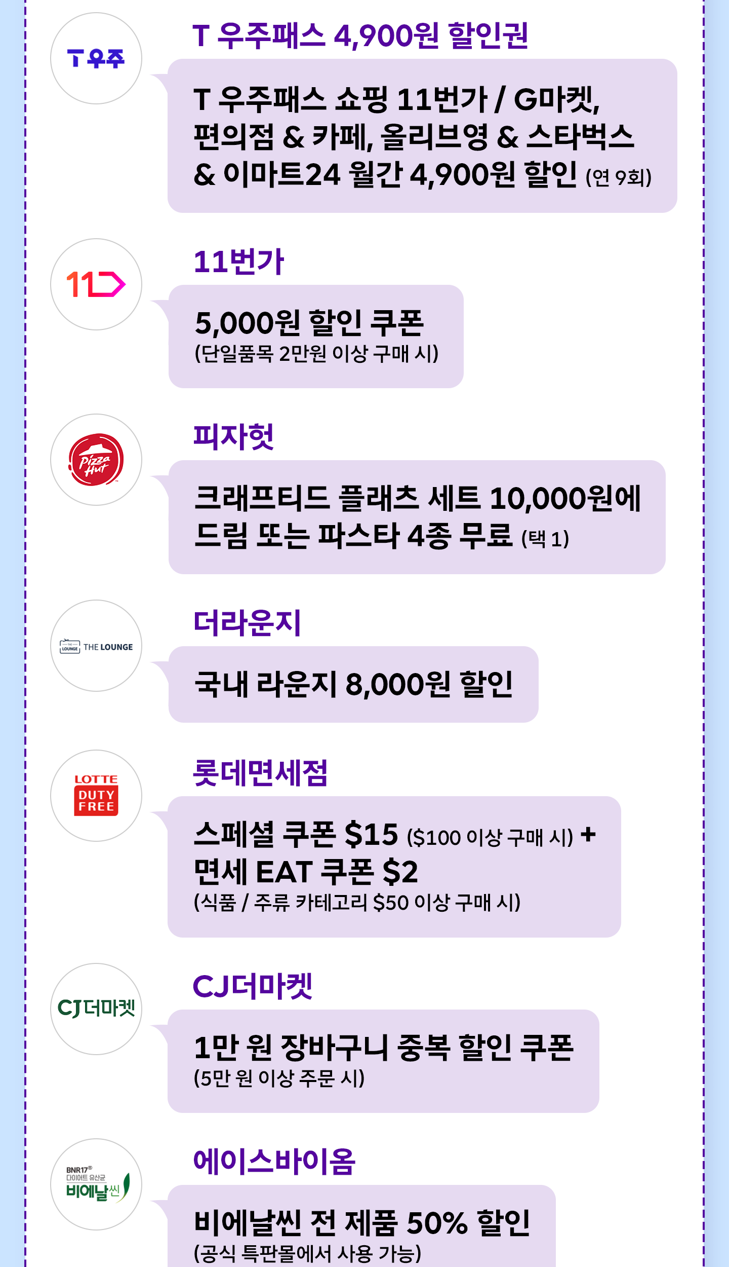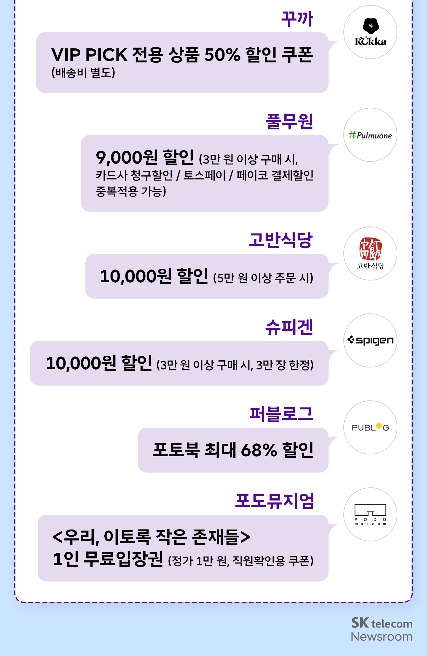 SK텔레콤은 2월 T 멤버십을 통해 일상에서 지속적으로 체감할 수 있는 다양한 식음료 및 생활 혜택을 선보인다. 잠바주스, 백미당, 더벤티 등 50% 할인과 아이스크림 1+1 등 다채로운 혜택이 준비되어 있으며, 가족 단위 방문 혜택도 포함되어 있다. 자세한 내용은 T 멤버십 앱 및 홈페이지에서 확인할 수 있다.