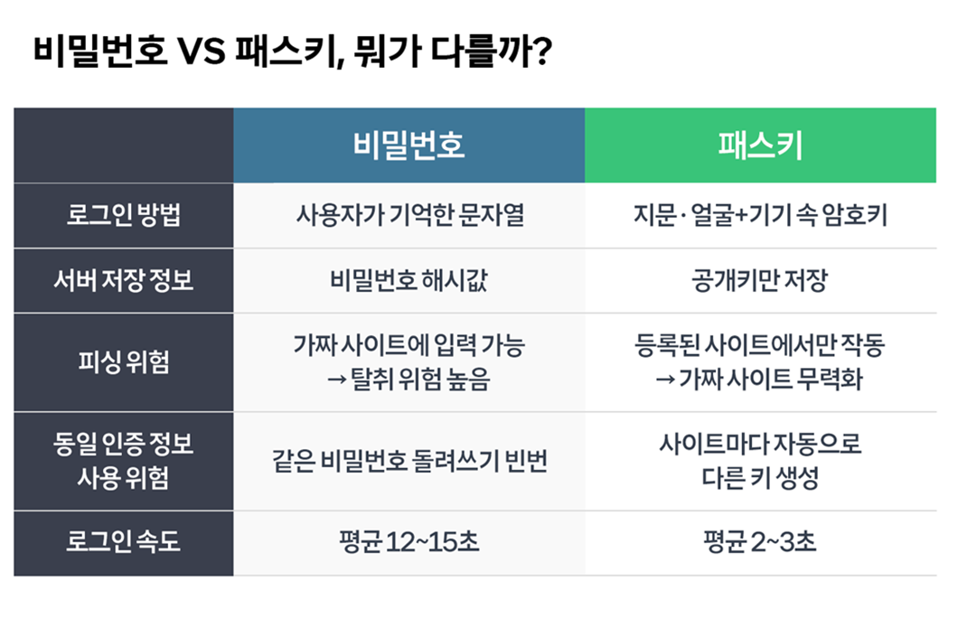 비밀번호를 더욱 복잡하게 만드는 대신, 비밀번호가 필요 없는 새로운 인증 방식이 등장했다. 사용자가 기억하는 정보가 아니라, 개인이 소유한 기기와 생체 정보를 기반으로 신원을 증명하는 방식이다.