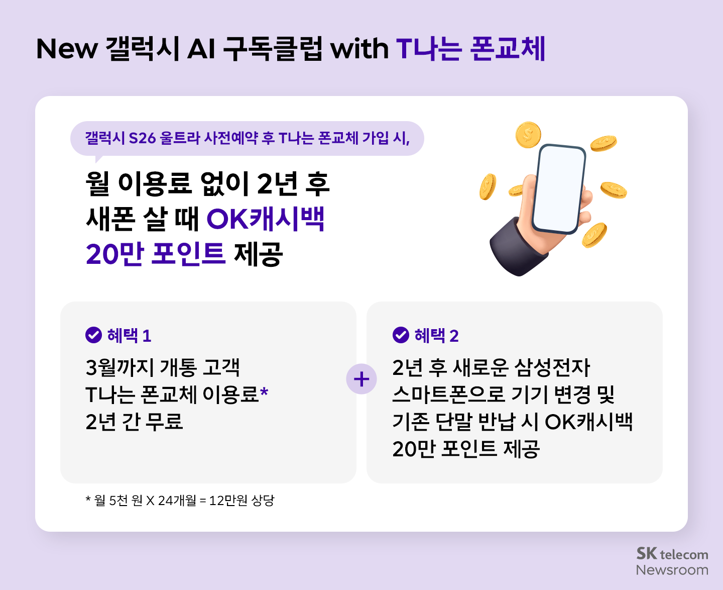 갤럭시 S26 울트라 고객을 위한 ‘T나는 폰교체’, 이용료 2년 무료·OK캐시백 20만 포인트 더블 혜택