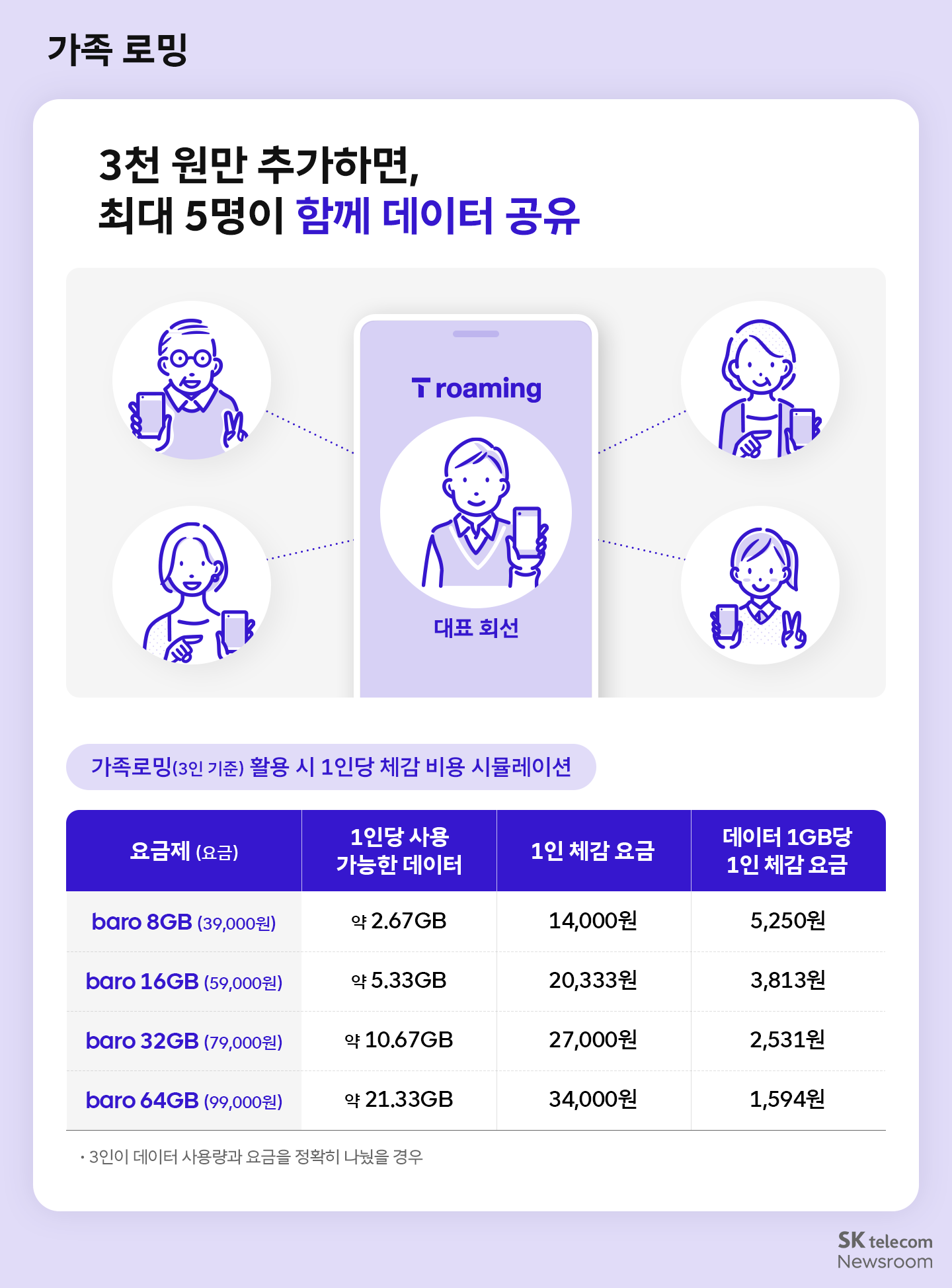 “가족과 함께하면 더 저렴해진다!” 가족로밍 1인당 체감 요금 시뮬레이션