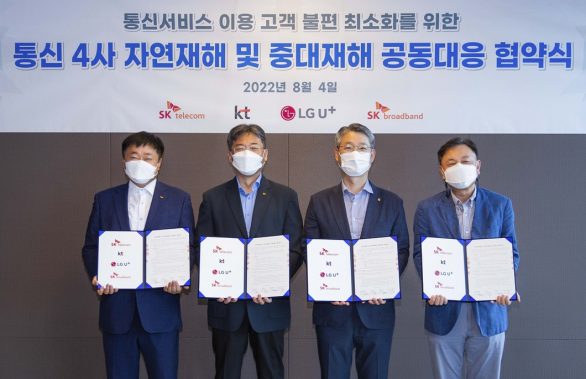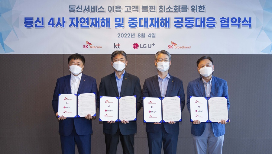 프레스센터 / 보도자료 통신4사, 자연재해 복구·예방 공동 대응한다 SK텔레콤, SK브로드밴드, KT, LG유플러스 등 통신 4사는 자연재해로 인한 통신 서비스 복구, 예방에 공동으로 대응하는 업무협약을 체결했다. 2022.08.04 다운로드 받기 보도자료 보도사진