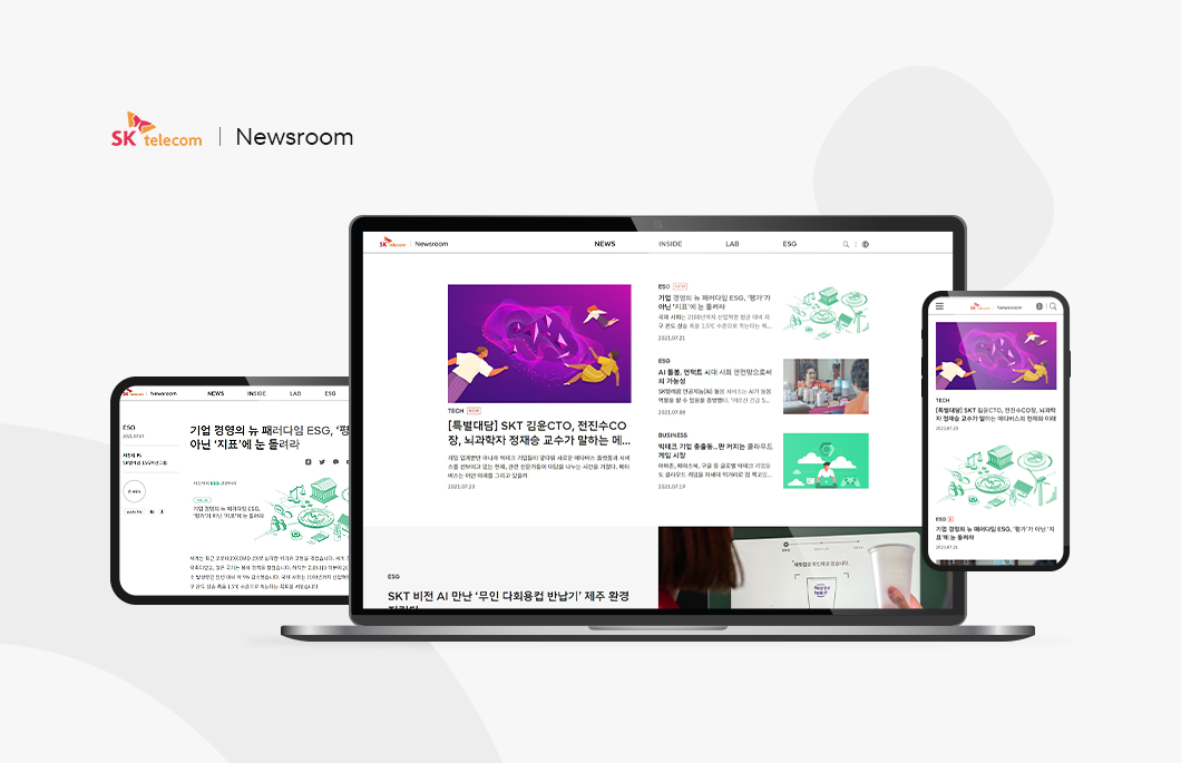 기업뉴스 / 기업 SK텔레콤 뉴스룸 200프로 활용하기 ‘SK텔레콤 뉴스룸’은 기자, 인플루언서, 애널리스트, 학계 등 당사를 취재하는 주요 이해관계자분들과 소통하는 공간입니다. 200% 활용할 수 있도록 이용 가이드를 준비했습니다. 2021.07.26